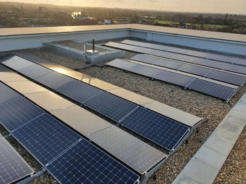 The supply and installation of an 30.24kWp system, consisting of 84 x 360monocrystalline solar panels. The panels were mounted on a flat roof, using non-penetrative, ballasted A-frames inclined at 10 degrees.